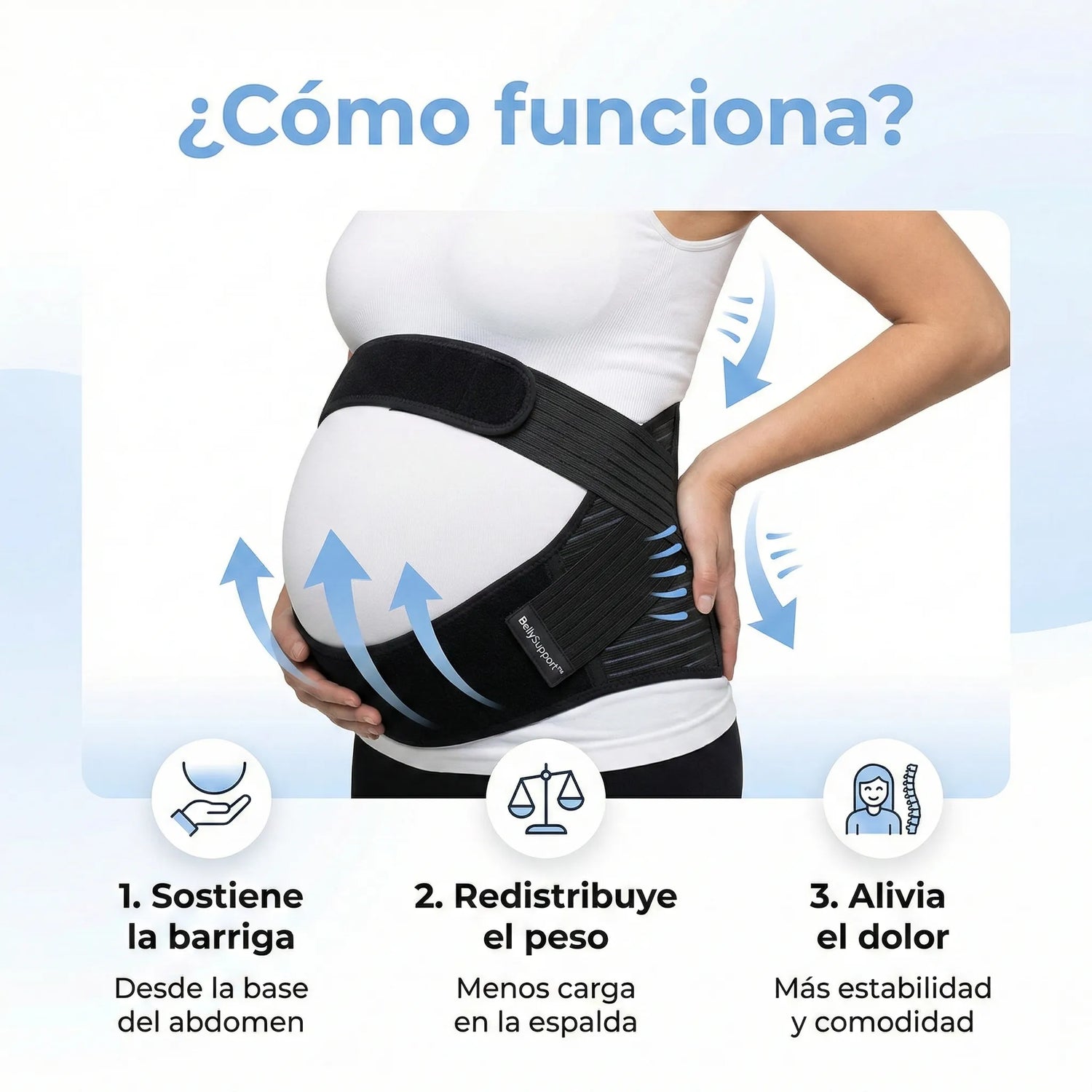 No. BellySupport™ se ajusta al cuerpo sin comprimir el abdomen, permitiendo que el vientre crezca de forma natural. Su diseño prioriza el soporte, no la presión, para que puedas usarla con total comodidad.